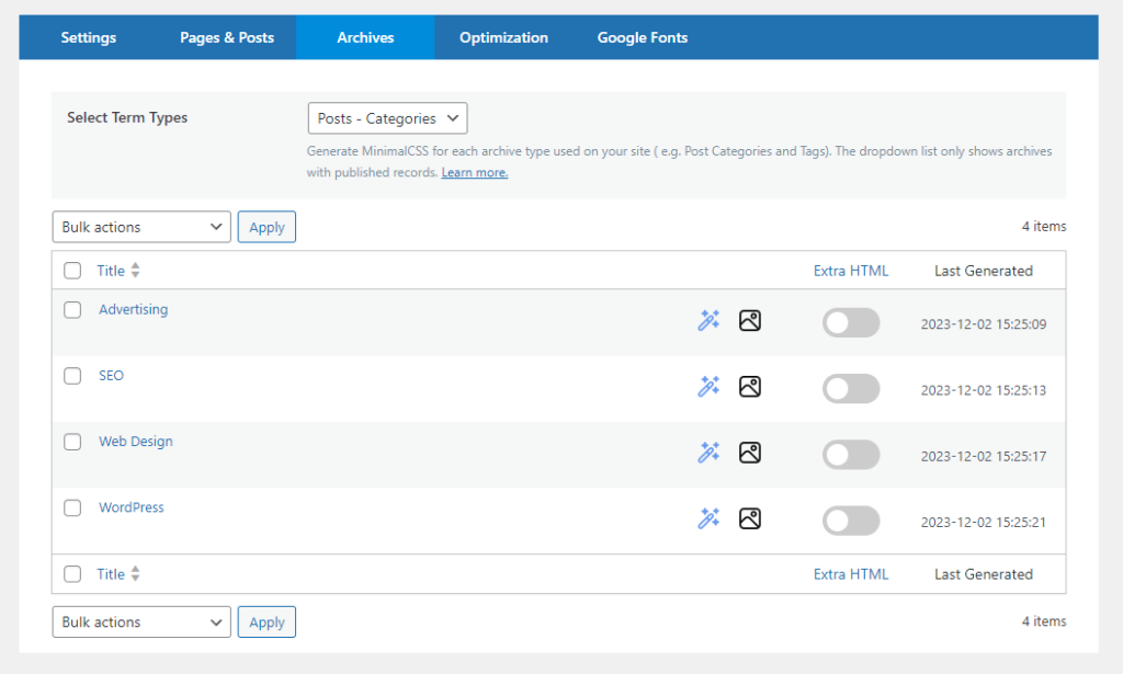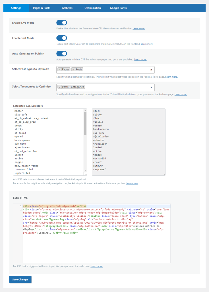 Check out the detailed documentation for help on setting up and getting the most out of the MinimalCSS plugin.